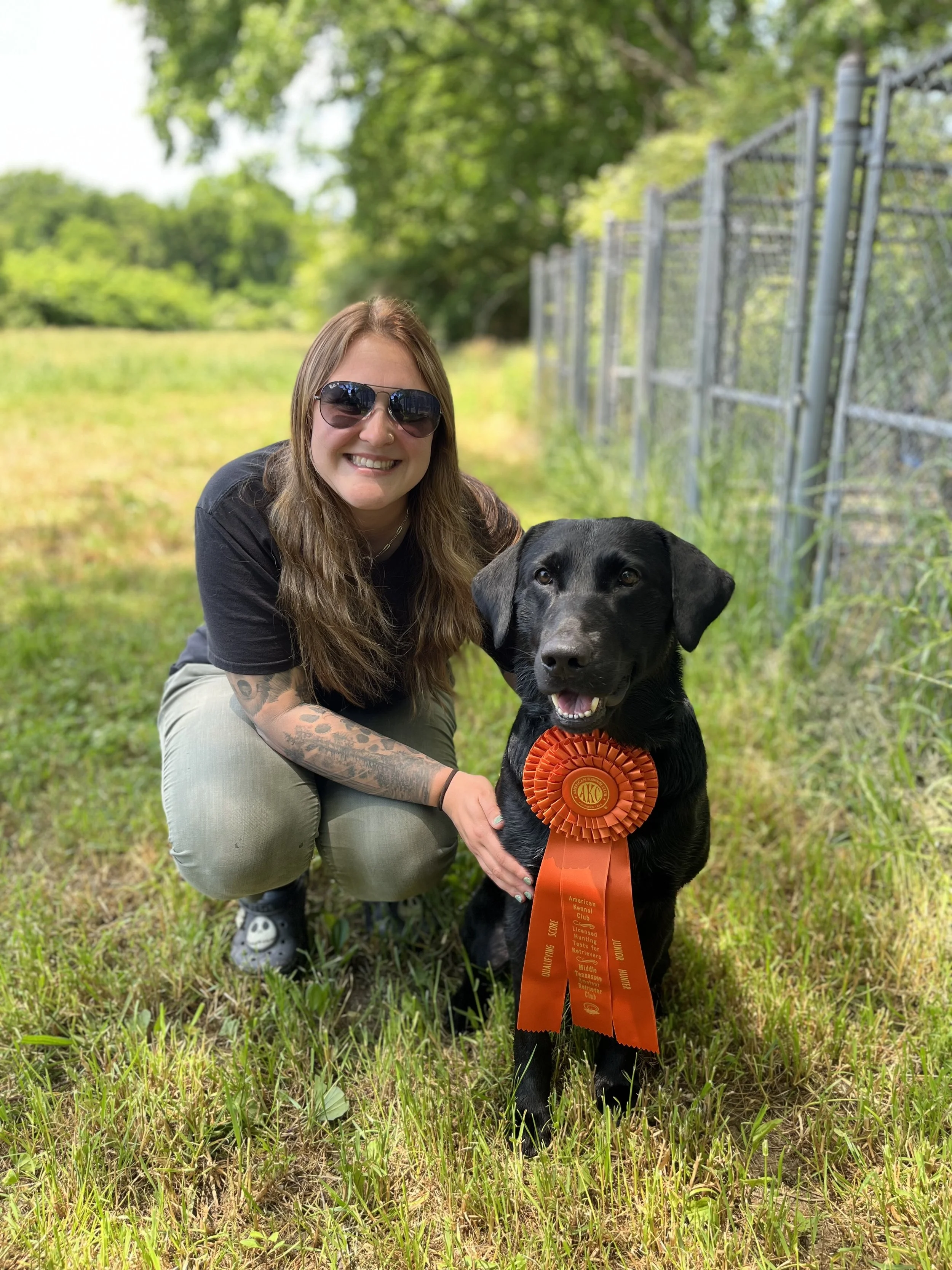 When I’m not training clients dogs, I am competing with my American Field Lab Boss Or my Australian Shepherd Cash. Boss & I travel to compete in Hunt Tests and Dock Diving Events. Boss just recently earned his Master’s Dock Diving Title and his Junior Hunter Title. Cash has titles in Dock Diving, a CGC & an AKC Trick Title. Our plans for 2024 include Shed Hunting, frisbee, more hunt tests & dock diving!